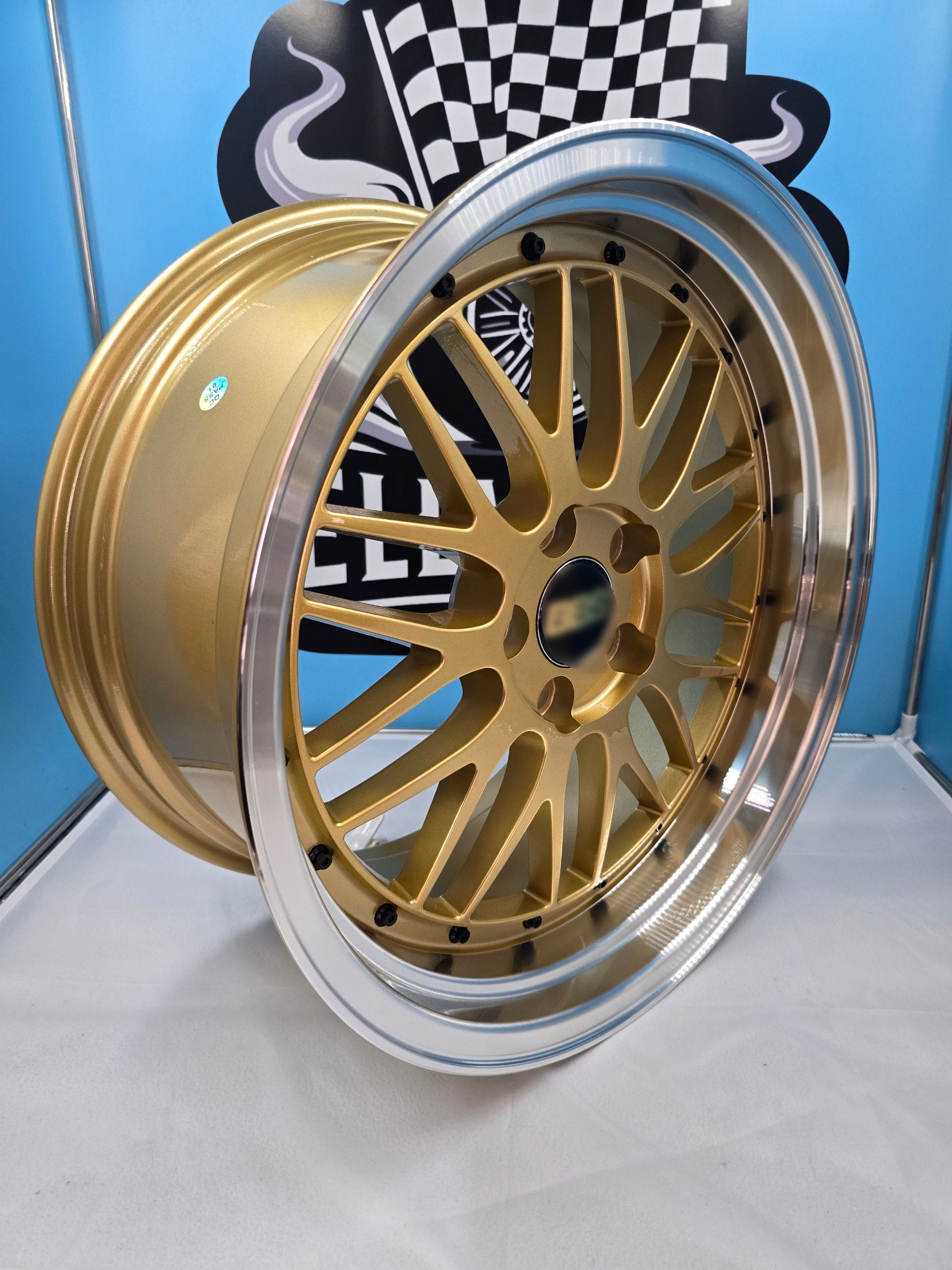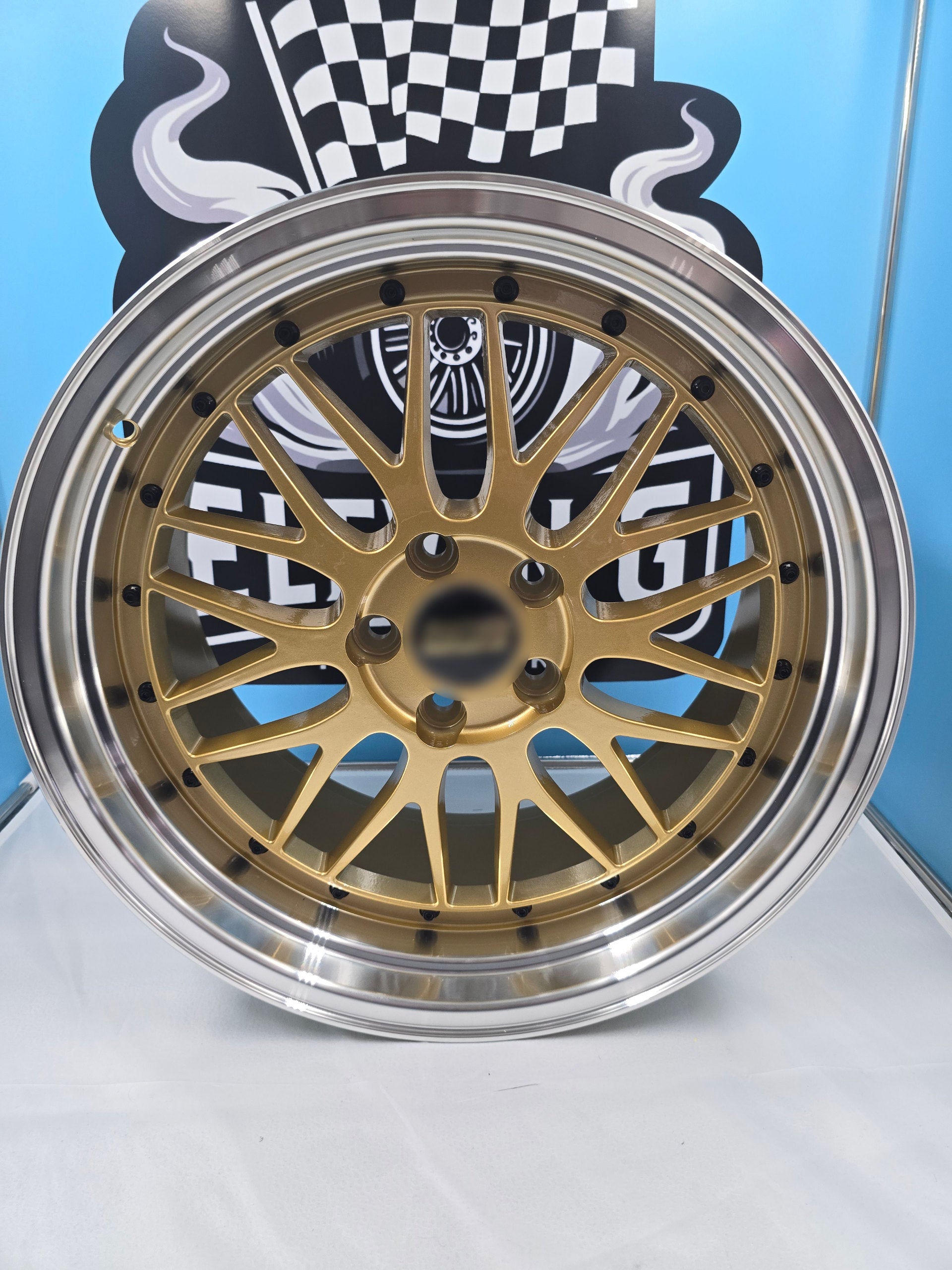 Gold polished lip with black rivets